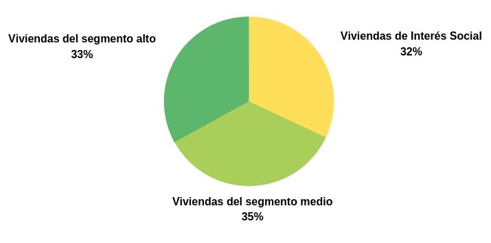 • 33 % Segmento alto (viviendas con un precio mayor a 360 millones de pesos)