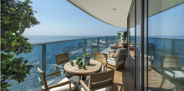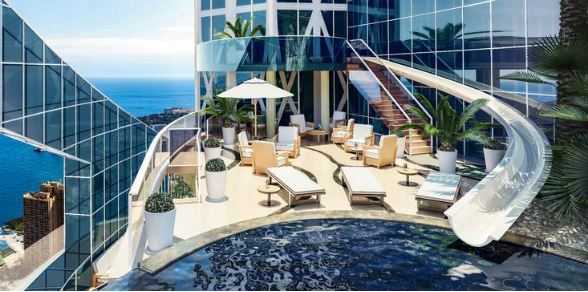 Su precio se debe a los amplios espacios y las comodidades que presta como una vista de 360 grados sobre el principado y al mar, una piscina infinita en la terraza, un tobogán que sale del salón de baile directo a la piscina, entre otros. El área construida de este apartamento es de 3.500 metros cuadrados.