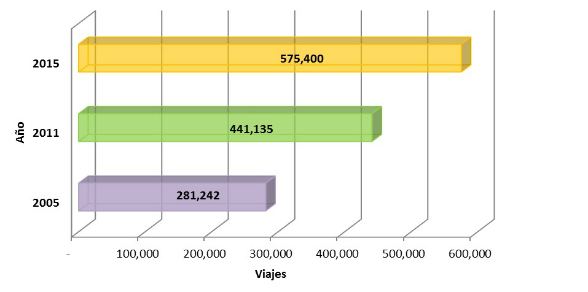 2005: se movilizaban en bicicleta más de 281 mil personas.