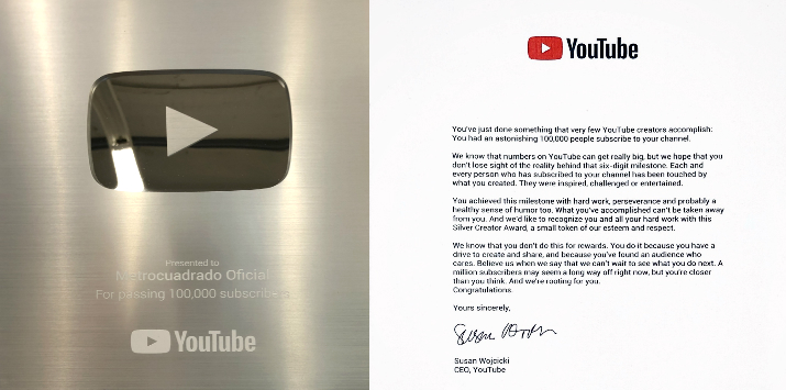 El resultado de estas producciones acaba de ser reconocido. YouTube le entregó al portal el “Silver Creator Award”, tras haber llegado oficialmente a 100.000 suscriptores.