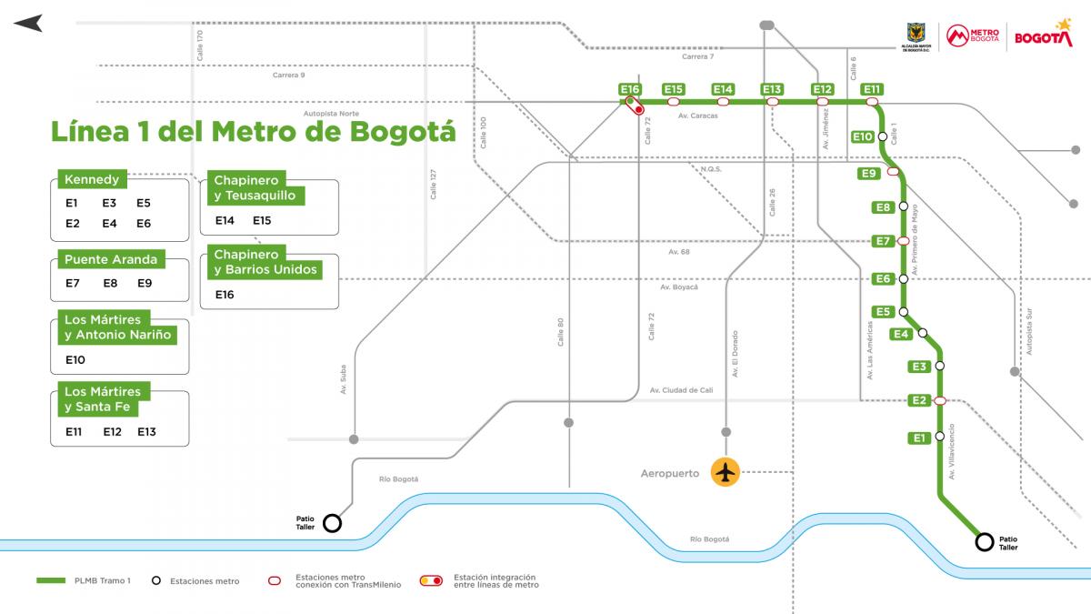 La primera línea del Metro de Bogotá es el proyecto más avanzado y emblemático dentro de este plan de transporte masivo. Esta línea se extiende desde el Portal de las Américas hasta la Calle 72, abarcando una longitud de 24 kilómetros.