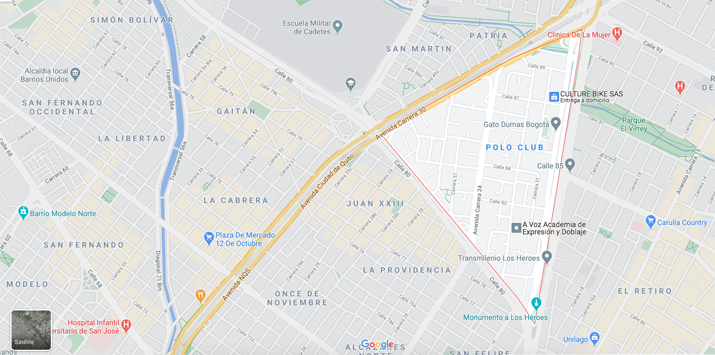 El barrio Polo Club está ubicado entre la Carrera 30 o Avenida NQS, la Calle 80 y la Autopista Norte. Precisamente, por su ubicación privilegiada en el norte de la capital, algunos lo llaman el triángulo de oro.