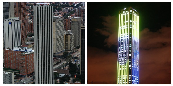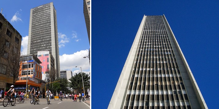 Este rascacielos está ubicado en el centro de Bogotá, en la carrera séptima con calle 24. Su construcción, desarrollada por Pizano, Pradilla, Caro y Restrepo Ltda., inició en 1973 y finalizó en 1978. Tiene una altura de 196 metros, 48 pisos y durante muchos años fue el edificio más alto del país, lo que lo convirtió en un ícono para la nación y para la capital.