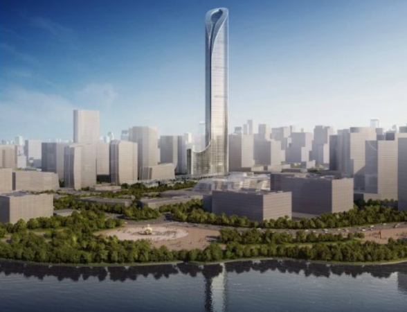 Su edificación está a cargo de Kohn Pedersen Fox Associates. Se espera que sea terminado durante este 2017 y aunque será el rascacielos más alto de la ciudad, ya se tiene proyectada la construcción de un edificio de 700 metros que lo superará.