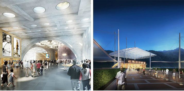 La base de la estatua es un centro de visitantes y salas de exposición dedicadas a Sardar Patel y la historia de la independencia de la India; a su vez a la altura del torso de la estructura hay un mirador con vistas al Santuario de Shoolpaneshwar y al río Narmada.