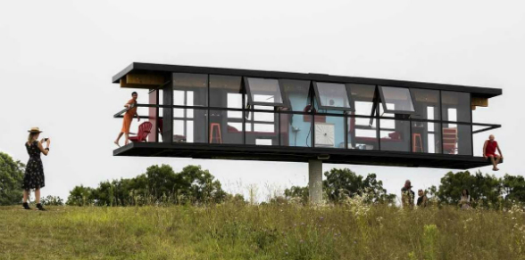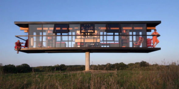 Para ello, Alex Schweder y Ward Shelley - un dúo de arquitecto y artista- trabajan juntos desde 2007 construyendo estructuras diferentes, interesantes y luego se mudan a ellas para experimentar.