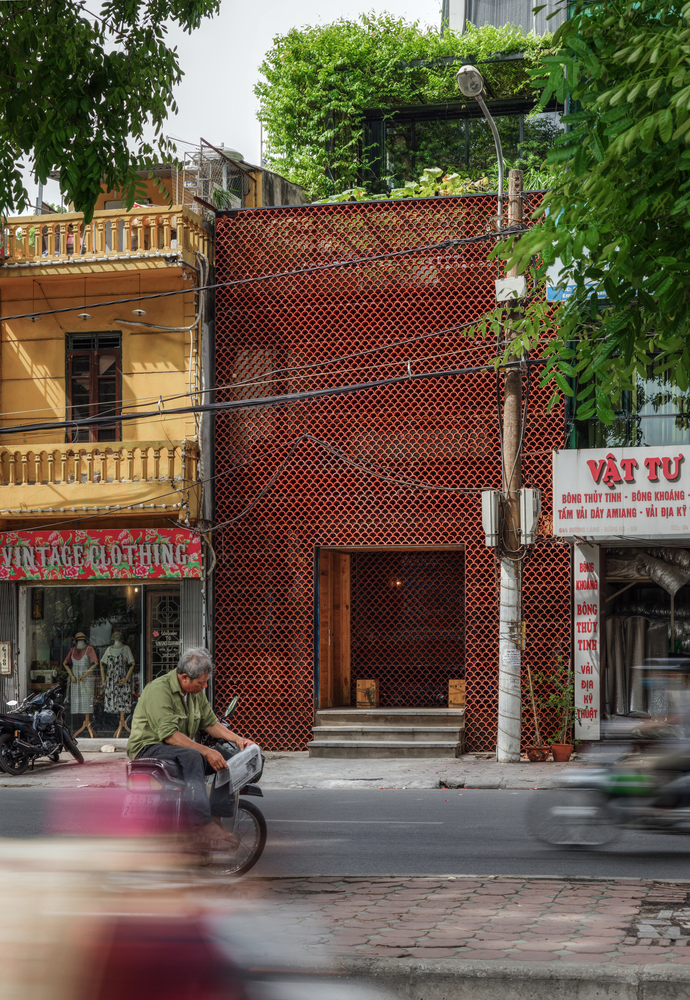 El objetivo de la construcción es un espacio de café combinado con el acuario Koi, el pez nacional de Japón. La construcción se basa en una casa de tres pisos con un patio delantero que tiene un área total de 88 metros cuadrados, con el requisito de diseñar una estructura de acero fácil de instalar y de quitar. Además, todo el interior, desde el techo hasta los muebles, se reutiliza a partir del material de madera disponible para el propietario.