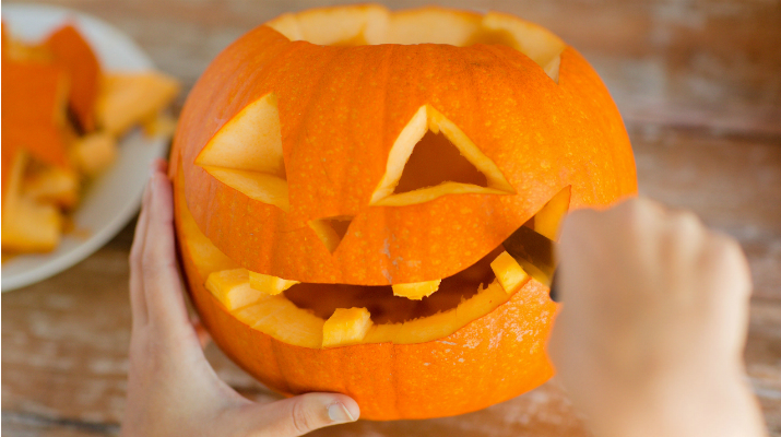 Las tradicionales calabazas no pueden faltar en la decoración de Halloween. Debes comprar calabazas maduras para que tengan su auténtico color naranja, tú escoges el tamaño, aunque por rapidez será mejor escogerlas medianas, pues vaciarlas no será tarea fácil. Una vez vacía deberás pintar el terrorífico rostro con un marcador para después realizar los cortes.