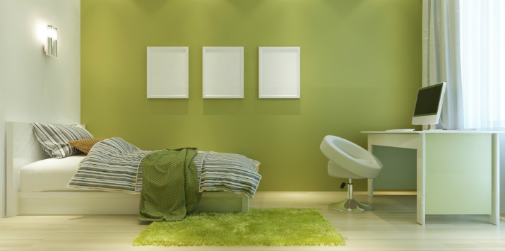 Es el color de la vida y de la salud. Proporciona una sensación de tranquilidad y seguridad. Da a las personas un fuerte sentido de seguridad. Los expertos le atribuyen un efecto calmante, pues alegra la vista sin cansarla. Ideal para espacios como habitaciones y baños.