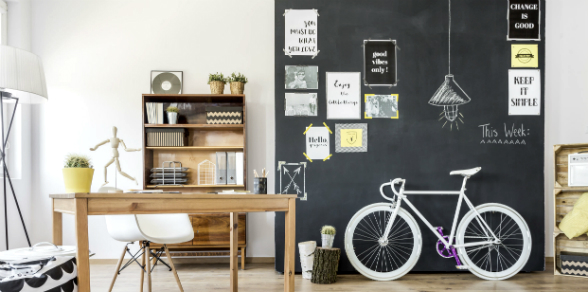 En lugar de tener sobre el escritorio muchos papeles, un espacio con esta pintura permitirá poner un calendario, tener recordatorios entre otros que ayuden a organizar las tareas.