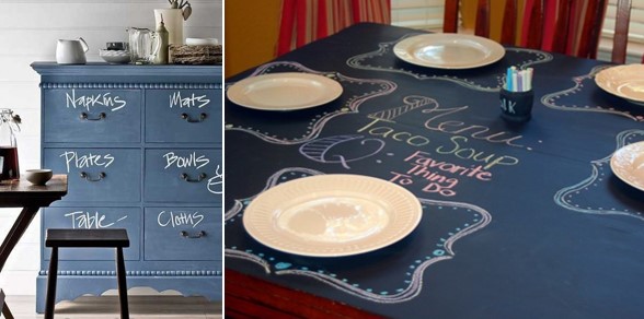 Esta pintura cada día es más común. Aunque inicialmente se usaba sobre todo para las paredes, en especial de los cuartos de los niños y en las cocinas, ahora se ve en varios lugares de la casa y en elementos como muebles, cuadros, vasos, entre otros.