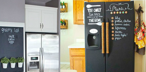 Ya sea en una pared, en los gabinetes (al interior o exterior), en algún mueble como la mesa, e incluso algo arriesgado como la nevera, la pintura de tablero es ideal. Esta se puede usar para escribir recetas, tener avisos o la lista del mercado.