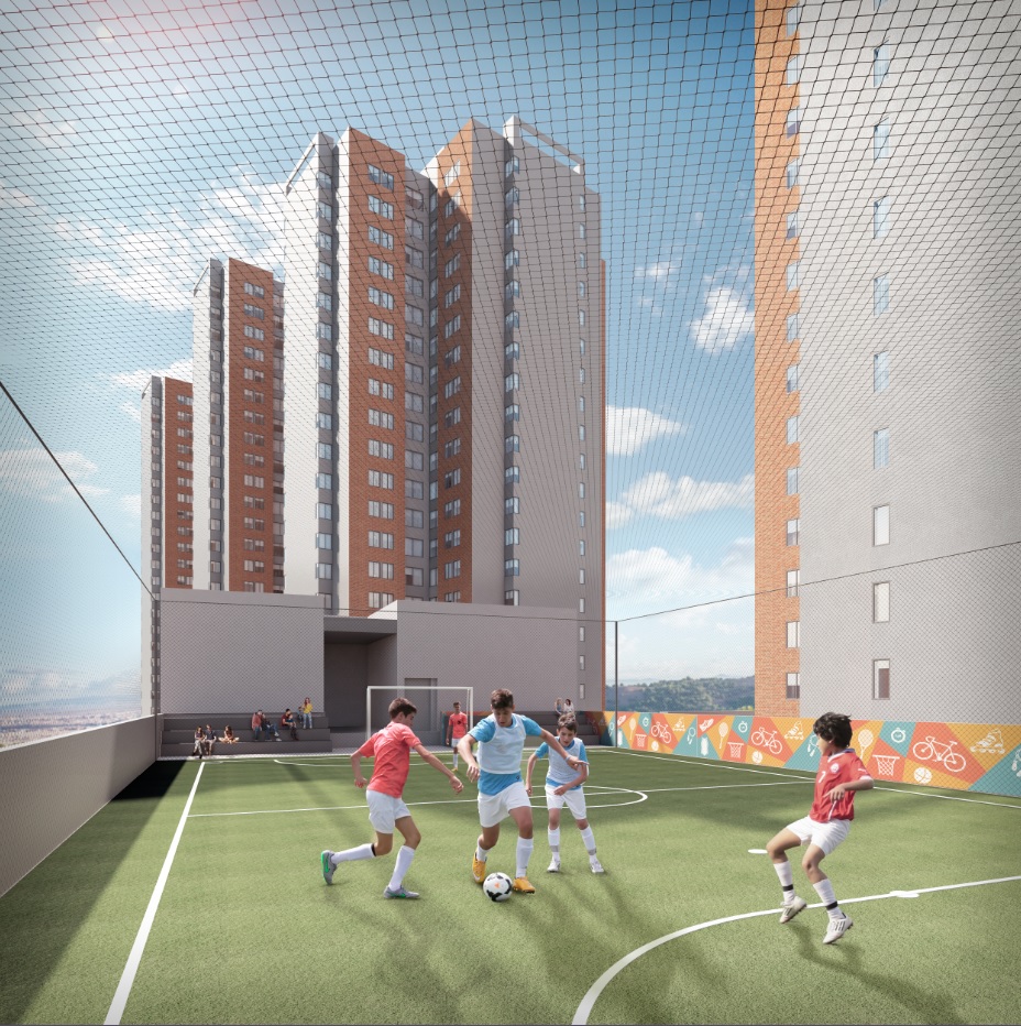 Sin embargo, eso no es todo, el complejo cuenta con gran variedad de zonas sociales entre las que se encuentran: cancha de futbol 5, zonas BBQ, salón de juegos infantiles, salón de juegos de mesa, juegos infantiles al aire libre, gimnasios exteriores bio-saludables, zonas para mascotas, salón comunal y amplias zonas verdes y senderos peatonales; todo esto hace de este un proyecto pensado en las familias, donde podrán compartir diferentes espacios.