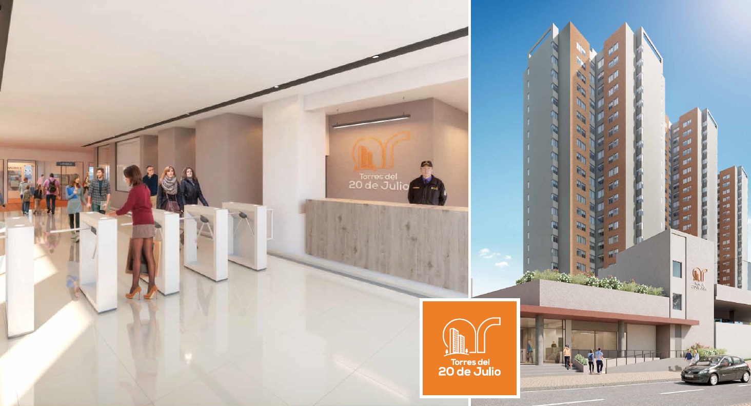Torres del 20 de Julio está conformado por 6 torres, de 30 y 31 pisos, siendo un desarrollo único en cuanto al diseño y la arquitectura de las torres, que le dan vida a uno de los proyectos más altos de Vivienda de Interés Social en el país, ofreciéndole a sus habitantes una vista privilegiada de la ciudad.