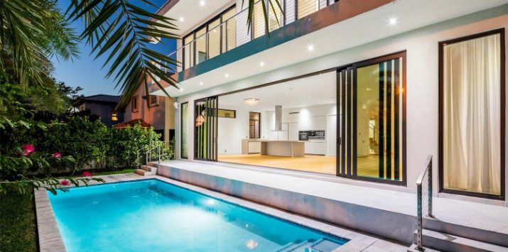 La casa tiene 3.617 pies cuadrados (336 metros cuadrados), es de dos pisos y cuenta con cinco habitaciones, cinco baños completos, una piscina infinita y dos parqueaderos.