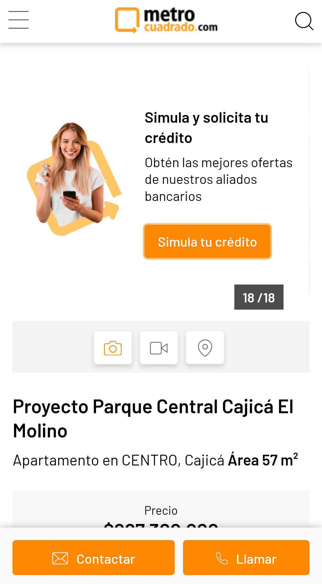 1. Ingresa a www.metrocuadrado.com o descarga nuestra app, y busca el inmueble de tu interés.