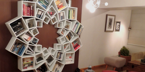 Quizá esta sea una de las ideas más originales y creativas, tener pequeños stands para libros y ubicarlos en la pared formando la figura de un mandala.
