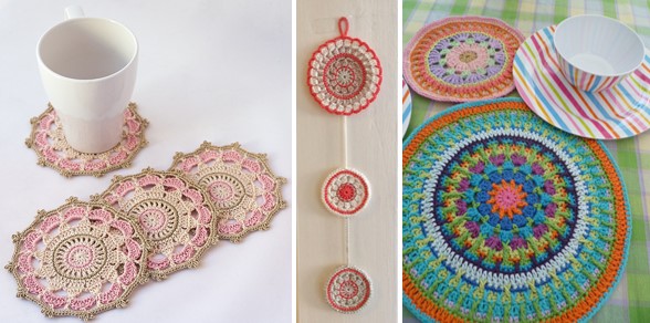 En esta técnica se pueden tejer mandalas que sirvan para poner debajo de las lámparas, usarlos como individuales y portavasos o colgarlos en la pared.