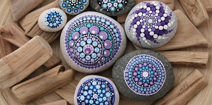 Esta es una idea sencilla pero original para decorar. Consiste en tomar piedras planas y sobre ellas dibujar los manadalas.