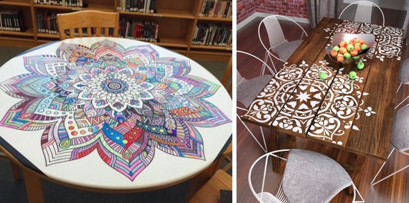Una pequeña mesa redonda y de madera puede convertirse en el lugar perfecto para pintar mandalas. O si no, la superficie de cualquier mesa es un buen lienzo para inspirarse.
